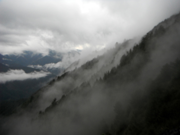 只為了入冬以來的第一道強烈冷氣團,只為了玉群因積雪殘念,略不甘心的路ㄟ在遊憩奧萬大後,決定再度南下,縱使上不了玉山,在山口欣賞也不錯,更何況在略有水氣的天候下,連塔塔加都有飄雪的可能。車由名間交流道下,取道水里往信義新中橫方向行駛。略濃的霧,帶著雨絲,讓車行緩慢,莫拉克破損的道路已大致修護完成,車子開來順暢。