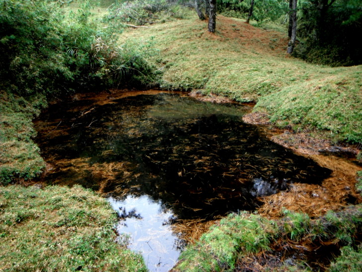 1350看天池(H2725m)。山谷倒影呈現出另一種姿色,如果有藍天相伴,這個小水池風光應該會讓造訪者驚豔吧!!拍照後續行。