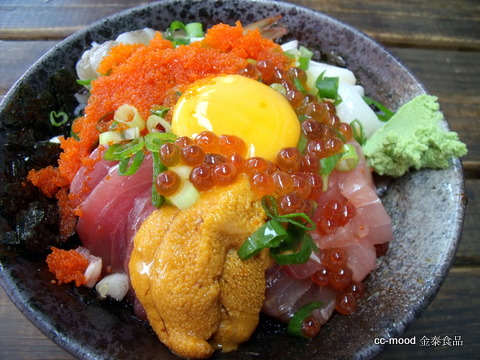 各式生魚片、干貝、海膽、蝦子、軟絲等都非常新鮮好吃,口感很棒...難怪這麼多人都點海鮮蓋飯。