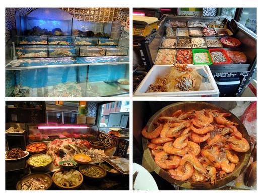 一樓點菜區擺滿各式魚貨、海鮮和小菜讓客人選擇;