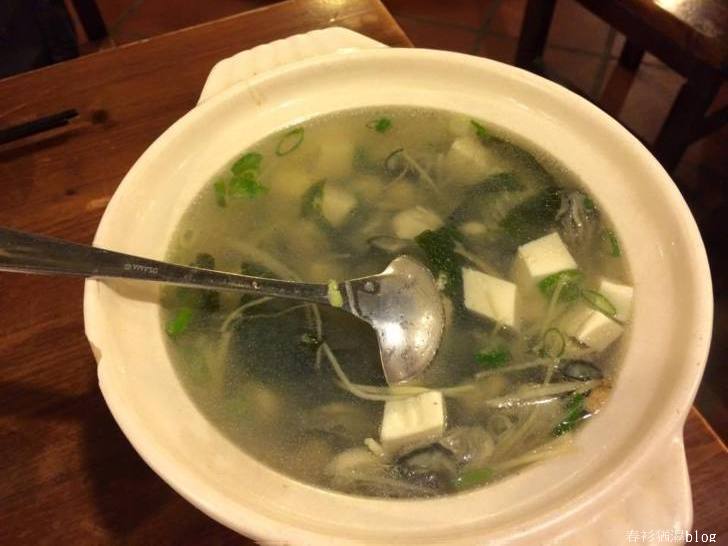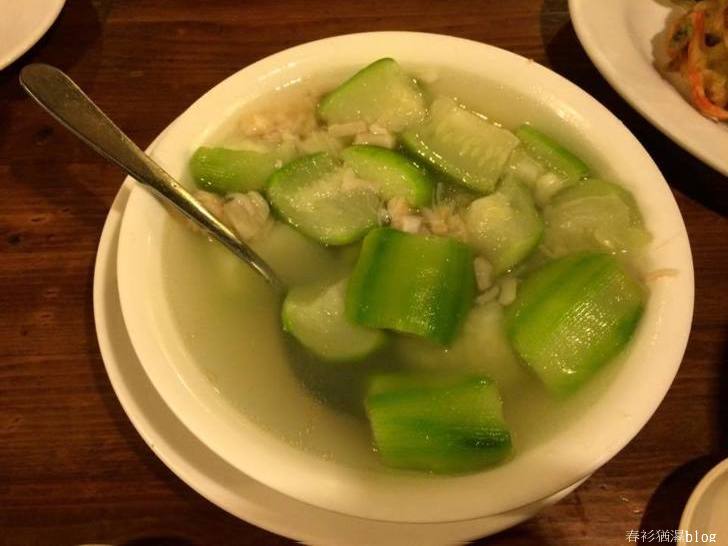 蒸豆仔魚,大蒜、蔥去腥,魚肉新鮮細嫩,搭配醬冬瓜,挺不錯。干貝絲瓜,湯汁多,味道頗鮮。蚵仔湯以砂鍋盛之,蚵仔肥美,裹粉,帶滑感,加了嫩豆腐丁、薑絲、蔥花,手法簡單。