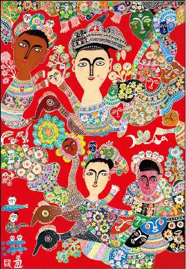 他的畫,人物造型和顏色,真是特別!他的世界,充滿奇幻!