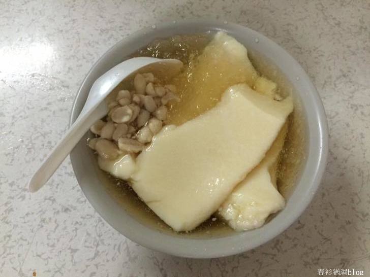 這家位於公館商圈的豆花小店,生意非常好。店面不大,除了桌椅,談不上裝潢,且品項只賣一種,簡單明瞭,即「花生豆花」,一碗35元,可以說完全以簡單古早味取勝。碗中只有土豆仁、糖水冰和豆花。土豆仁一瓢,軟硬適中;糖水清甜。最難能可貴的是,豆花口感綿密,且微帶黃豆的焦香,讓人驚豔、回味不已。