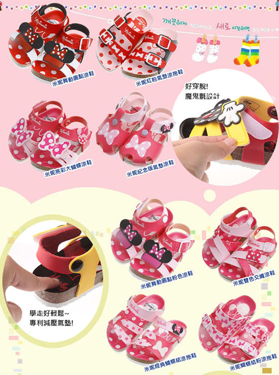 25.Disney迪士尼米妮粉色舞動圓點歐風兒童氣墊涼鞋-13/14/15/16/17