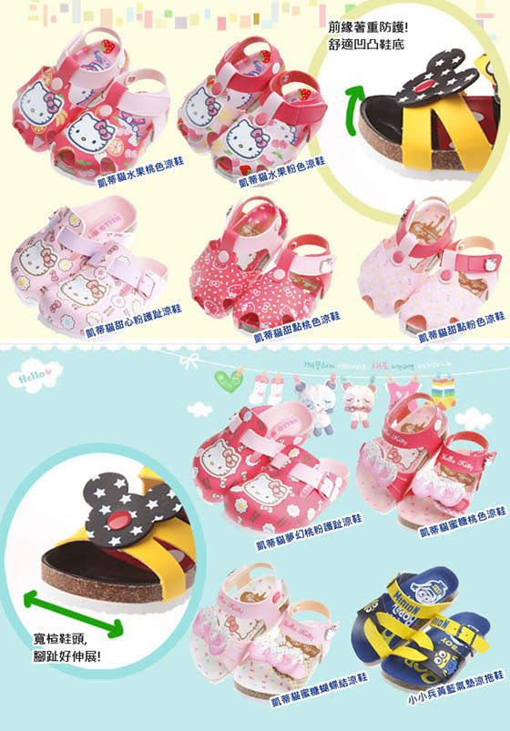 平均每雙最低只要519元起(含運)即可購得新款兒童卡通氣墊涼鞋任選1雙/2雙,Cars閃電麥坤、HelloKitty凱蒂貓、小小兵等共32種款式可選!