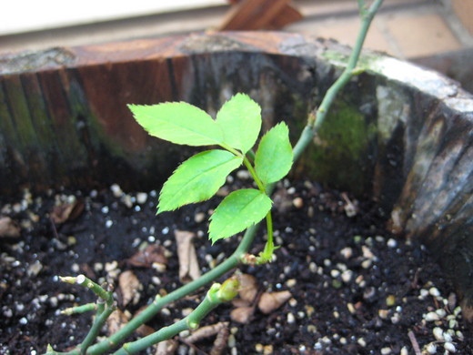 這原本很小一盆玫瑰,去年買回來後,我把它移到大一點的盆栽,看著它開花然後凋謝,然後葉子掉光光。