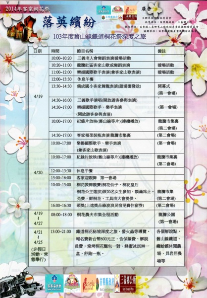 103年客家桐花季落英繽紛的最新節目表