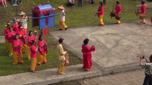 這是2014年客家桐花季,在龍騰斷橋舉行的103年度舊山線鐵道桐花季深度之旅壓軸大戲之一,由於別緻與新奇,應觀眾要求加演一場,以滿足攝影者的需求,本舞是將客家人古時迎娶的習俗,以現代的舞步,加入傳統的客家元素,如新娘穿著古代的鳳冠霞披,腳下卻跳著「山地側進步」,古典與新潮相結合,創意十足,難怪安可聲不斷,當然大會的鈔票也飛的值得。加演一場,當然得加付一場的新台幣的錢。