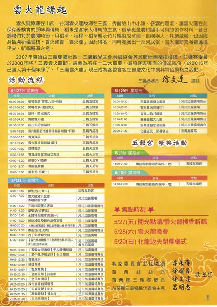 歡迎大家5用27至5月30日蒞臨三義,參加民國105年三義客家雲火龍節,順便參觀建中國校台階前3D造景浮彫及龍騰斷橋(台灣百景之
