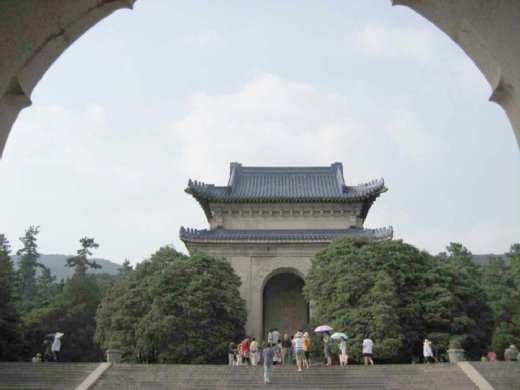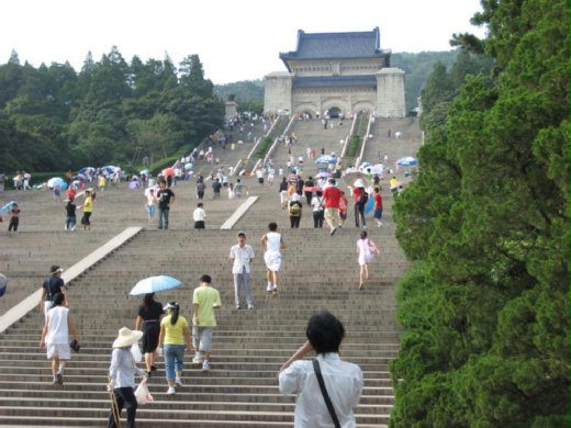 當遊覽車帶我們進入龍蟠虎踞的鍾山,沿路看到的是整排高大的梧桐樹,在攝氏38度的高溫下,來到南京國父
