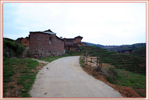 這時,巧遇一老農,他說山背有一更大更美的土樓。無奈,陰陰的天,暗了我們的興頭,不敢再貿然前往,怕天黑後回路難行,遂只在前山快快轉轉看看,拍了幾張相片後,便打道回陳東和龍岩。回到山下時,早已燈火點點了。