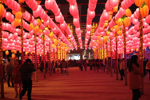 找了一下路,到燈會展場已六點半了,一下車就聽到一聲巨響,原來是燈會試燈完美放了三分鐘的煙火,天空剎時變的五顏六色,真的是美不勝收,變化萬千的各式煙火,讓燈會增加了不少喜悅。