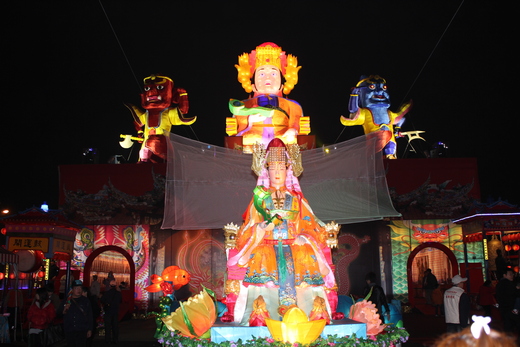 來自對岸的花燈也別具特色,江蘇揚州河畔的雅景在燈會裡顯的特別突出;還有免稅商店贊助的花燈,代表著二岸旅遊熱絡的象徵;處處的燈海,美麗景致,如沐春風,映照著台灣正一步步邁入更幸福的國度。