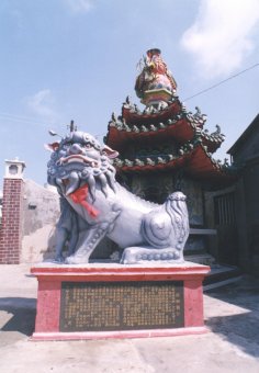 「觀音亭」寺兩側石獅,不凡,非石獅,是百年糯米獅也。