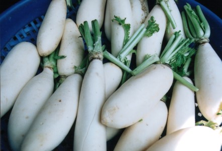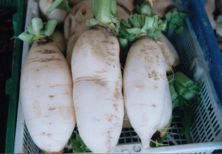 蘿蔔原產亞洲或中國,是冷季作物,易栽培,品種多。依根型則有球型、長筒型、酒瓶型、圓錐型、紡錘型、橢圓型、細長型等;依植株型態則分板葉種、裂葉種、櫻桃蘿蔔群等;膚色則青、紅、紫、黑;肉色則白肉、紅心、紫心、青綠、全紅、全紫。西瀛所產,多白皮白肉,望之晶瑩剔透,食之清甜開胃!