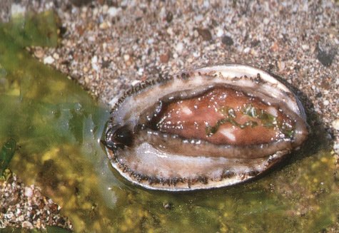 鮑螺科之九孔,貝殼扁平,有透孔六至九個。一至新孔生,舊孔則漸封閉,唯孔數不變,依然九孔。殼內具珍珠光澤,燈照乃現七色彩光。