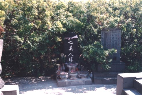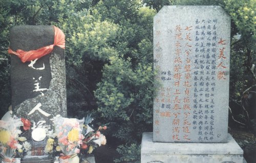 後人有感七女貞烈,迺立石碑,刻「七美人塚」四字,碑背有文,敘此塚其來,以資紀念,旁築圍牆,此民國14年之事也。