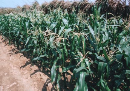 玉米,禾本科,一年生草本。菜宅普遍栽植,雜糧作物也。