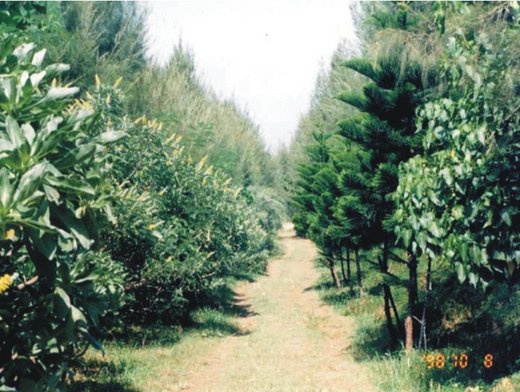 耕耘大隊乃由工作隊組織,雇工直營、維護。慎選抗鹽耐旱之造林樹種,以適地適木之原則,建造複層混合林及施行生態造林,使造林樹種多樣化。木麻黃、檉柳為主要先驅樹種。混植:樹青、樹杞、肯式南洋杉、菖塔德、破布烏、毛苦嵾、魯花樹、欖仁‧‧‧‧歷經六年,蔚然成林。而今邁入更新階段,以林相改良方式,淘汰枯死、老化、生長衰退之木麻黃,間植小葉南洋杉、黃槿、台灣海桐等海岸樹種,形成完整優美複層林相,確保林木永續生長,以期發揮更好之防風功效,將來,達成海岸林休憩區之目標。