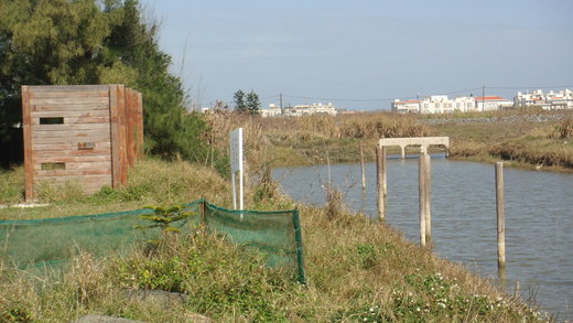 大排之畔,設賞鳥區,木造屏圍,開以小窗,於此賞鳥,不致驚擾嬌客也。作客於此候鳥,品類紛繁,除大批白鷺群聚外,若:紅尾伯勞、磯鷸、紅隼、黃頭鷺、白頭翁、八哥、斑鳩、澎湖小雲雀、小水鴨‧‧‧或隨季節,前來拜訪。君若有心,見到飛羽之美,定是滿心喜悅!