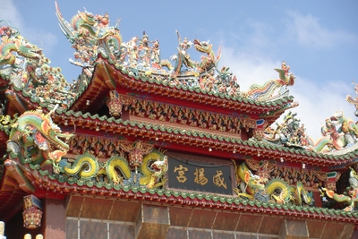 「池王降乩欲建宮,化身為人展神通;杉材隨波逐流至,且看飛瓦成大功。」此合界村威揚宮「池王飛瓦」之故事傳奇,膾炙人口,流傳至今。
