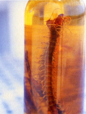 抓獲蜈蚣,處理蜈蚣,製蜈蚣酒,雄者活者為佳,洗淨置入高粱酒中浸泡,蜈蚣醉不能勝,噴毒不輟;死蜈蚣泡酒易黑,不可喝;至若雌者,流涎較多,瓶內終有白色沉澱物; 蜈蚣既泡酒,瓶身須橫放,以免身軀成S形,則賣相差矣!