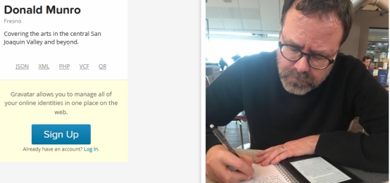 唐纳德·蒙罗曾,做过三年记者,超过半数时间都在报道圣华金河谷中部的艺术盛况。作为一个土生土长的加利福尼亚人,蒙罗从一个加利福尼亚工艺学校《野马日报》的学生编辑,到哥伦比亚大学的艺术新闻研究生,现在成为弗雷斯诺当地有名艺术评论家。