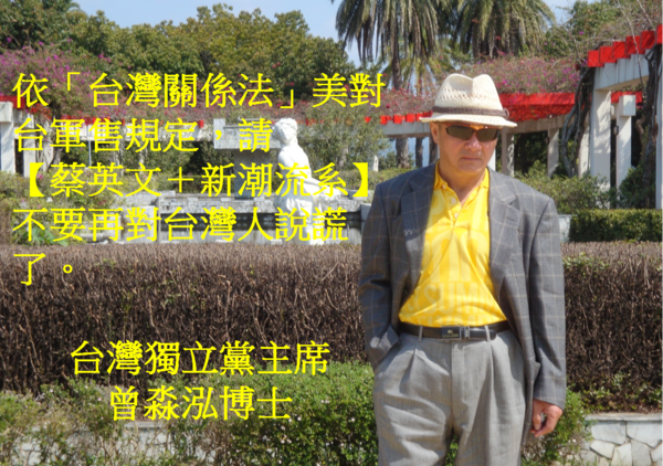 依「台灣關係法」美對台軍售規定,請【蔡英文+新潮流系】不要再對台灣人說謊了 請【蔡英文+新潮流系】領軍下的「綠色國民黨」、「中國民進黨」不要再對台灣人說謊了。台灣能否生存,源自軍隊及其國防武力...