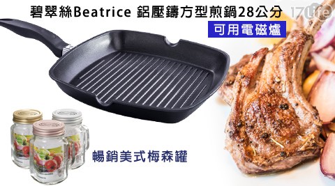 17life團購熱銷推薦→【碧翠絲 Beatrice】鋁壓鑄方型煎鍋28公分/暢銷美式梅森罐(3入組)