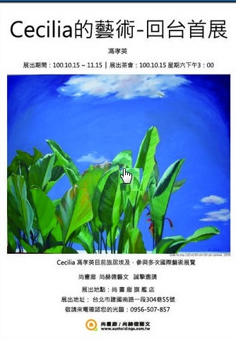 Dear Olivia,太謝謝您對我畫展的支持和鼓勵!世界須要文學與藝術!人間會更美好!若有時間可抽空過來畫廊坐坐,畫展將持續一個月。 開羅的女人 CECI 於 2011/10/17 11:39回覆
