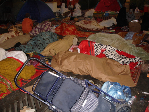子夜12點出發回米納。這一晚幾百萬人大遷徙,馬路上,塞車、塞車,塞車,到處是人山人海,車子根本沒法開進麥加城裡,疲憊不堪的我們得走一大段路去和車子會合。車子走走停停,直到實在再也無法前進,大家又下車走路,走了一段,我注意到又到了昨天上午休憩等車的超市,也就是說前面還得走好長一大段路。
