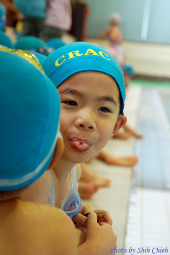 小孩唸的幼稚園有游泳課,據說從小班開始的話,到了大班畢業的時候,應該可以將自由式、仰式、蛙式、蝶式外加潛水,通通學個精通,在水中悠遊自在。小孩班上有位女同學就是樣板,個兒小小的她,成果展當天以四式混合游完100公尺。但是這樣的小朋友,一班大概只有一兩位,畢竟每個小孩的水性不同、學習進度不一,自然無法以一蓋全。