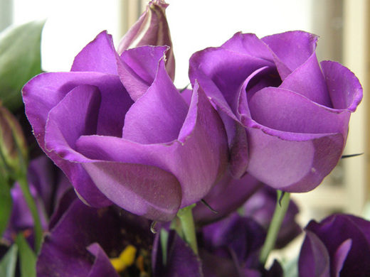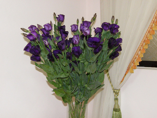 走進花店,就被這束紫給吸引住了。整束的紫緊緊被包裹住,霎時還當是紫玫瑰。