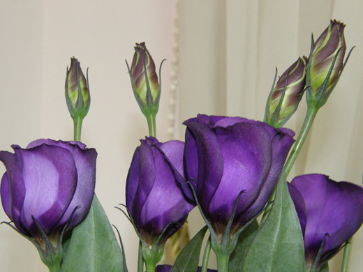 看到葉子,當下才知是桔梗。花瓣彷彿紫色絲絨般細緻。花店的人說,這是難得一見的品種,開店多年,還是第一次拿到這品種的桔梗呢。