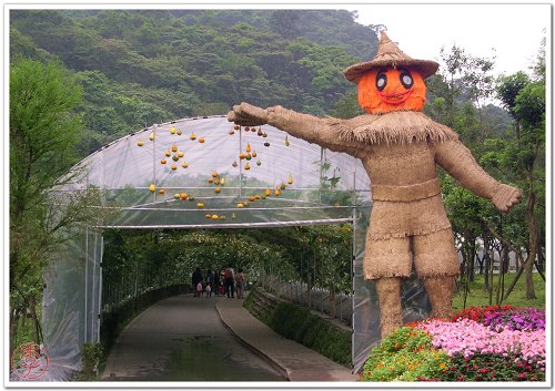 下圖二:「綠色博覽會」是宜蘭另一項重頭戲,主要用花草樹木營造出氣氛、變化花樣。圖為某年展出之南瓜隧道。