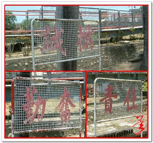 上圖:橋頭糖廠三塊斑駁的「精神標語」立牌:誠樸、勤奮、責任,靜靜地杵在路邊,沒有遊客駐足多望它們一眼。