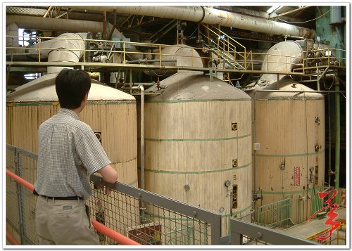 下圖一:橋頭糖廠開放以前的製糖工廠、設備供人參觀,三個龐大的發酵桶頗為壯觀。