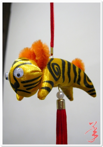 下圖二:造型古樸憨厚的老虎香包,散發傳統的香料味。
