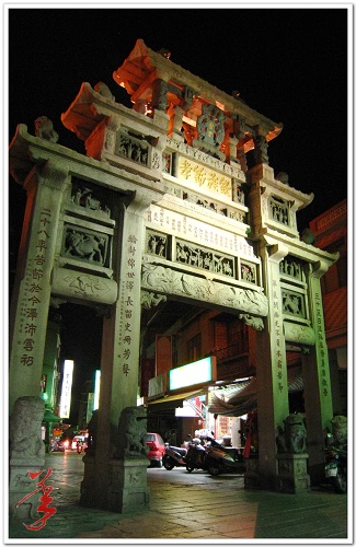 邱太夫人作風很平民化,牌坊就在市場裡,上早市的過往人兒都必須從它底下踅過,沐浴在她老人家的遺風教化之下。我說這牌坊晚上看好看,一來「門前冷落車馬稀」,滿月光華照映下,牌坊顯得巍峨。二來,金門縣政府在牌坊上燈光打得滿有fu的,有股白天看來不會有的思古之幽情。