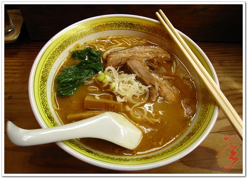 幾片叉燒、幾方筍乾,一小束青菜在深褐色的湯與麵之間沉浮,點綴的意涵多於健康。這碗麵的滋味,對我而言正是被叮嚀再三的鹹與滋味;台灣的日式拉麵再怎麼地道,就是做不出這個味兒—很夠勁的鹹,讓人能忘掉健康因素以身相殉;而桌邊的那杯冰水,功用大概就是把食客從這股子夠味的勁頭懸崖邊拉回來吧?!