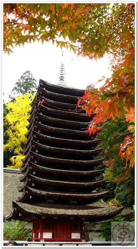 上圖:京都有許多寶塔式的建築,很遺憾那天吃早餐時忘了帶相機(誰會在吃早飯時就把相機帶著啊?),沒把這幅「古代水墨畫不小心嵌進現代畫派作品中」的意象留下,只好找張談山神社的寶塔照片來湊數兒。