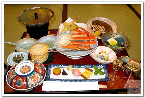 下圖:談到吃,京都的「會席料理」、「精進料理」都是這樣擺滿一整個桌案,讓你有種「眼福」大過「口福」的感覺。圖為某餐「會席料理」的「盛況」。