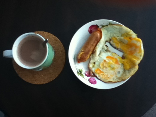 結果原本很懶的我,就變得更懶了。這兩週孩子們放假在家,我特早的課也接近尾聲,多半不用早起。就算起床了也多半直接開始工作。所以呢,就常常聽見 Pete 問,馬麻,今天吃什麼?我跟他稍微討論一下,我的早餐就上桌了。說實在他蠻有天分的,而且在此天天看 Master Chef, 多少有些概念。