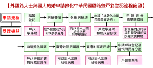 外國籍人士與國人結婚申請歸化中華民國國籍暨戶籍登記流程表 (中文版)