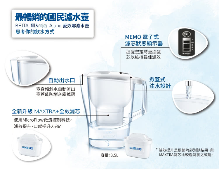 德國BRITA 愛奴娜濾水壺(內含Maxtra Plus 濾芯1入)+Maxtra Plus 6入濾芯