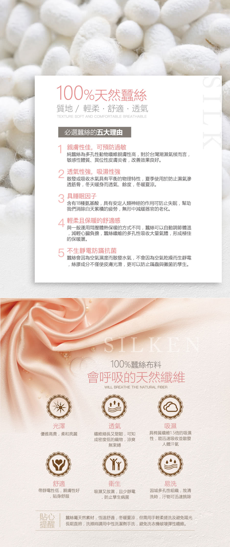 - 100%蠶絲布料褲底親膚感受