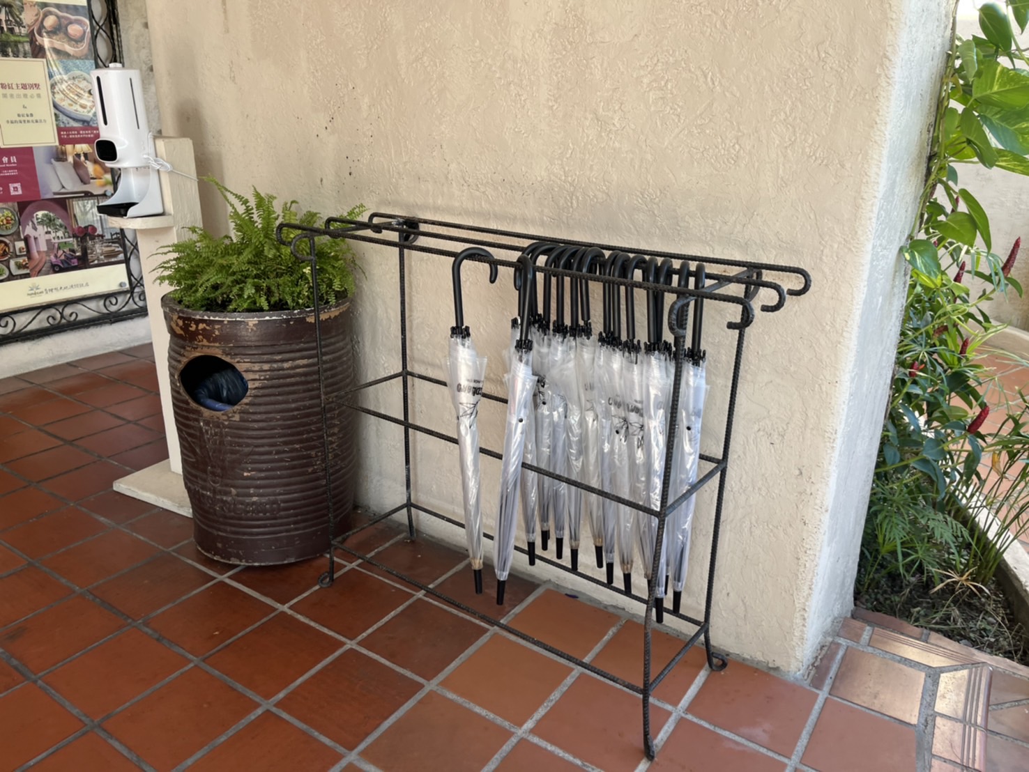 大廳門口放置了多把雨傘,雨天時提供給住客使用。