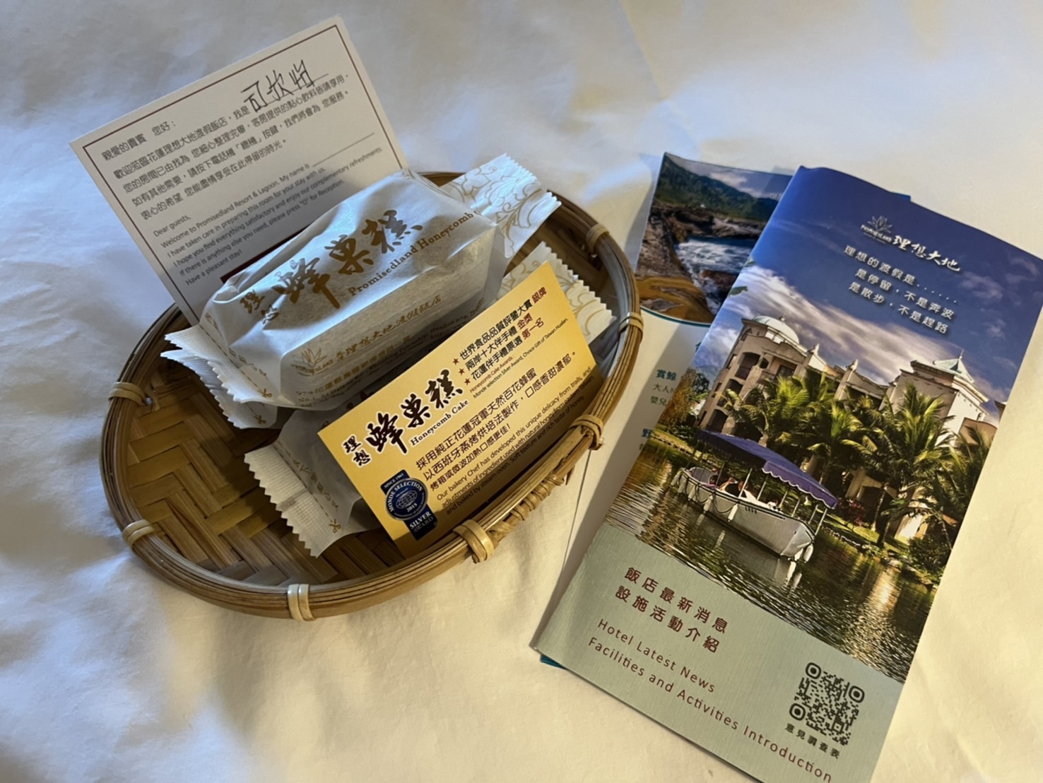 房間會附上飯店自製的蜂巢糕小點心,以及當天負責打掃房務人員的名字。