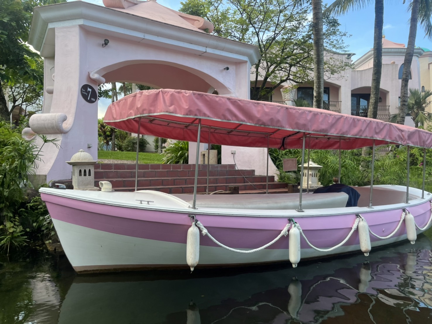 乘船穿梭航行在美侖美奐的建築與美景之中,它會繞行飯店一圈,