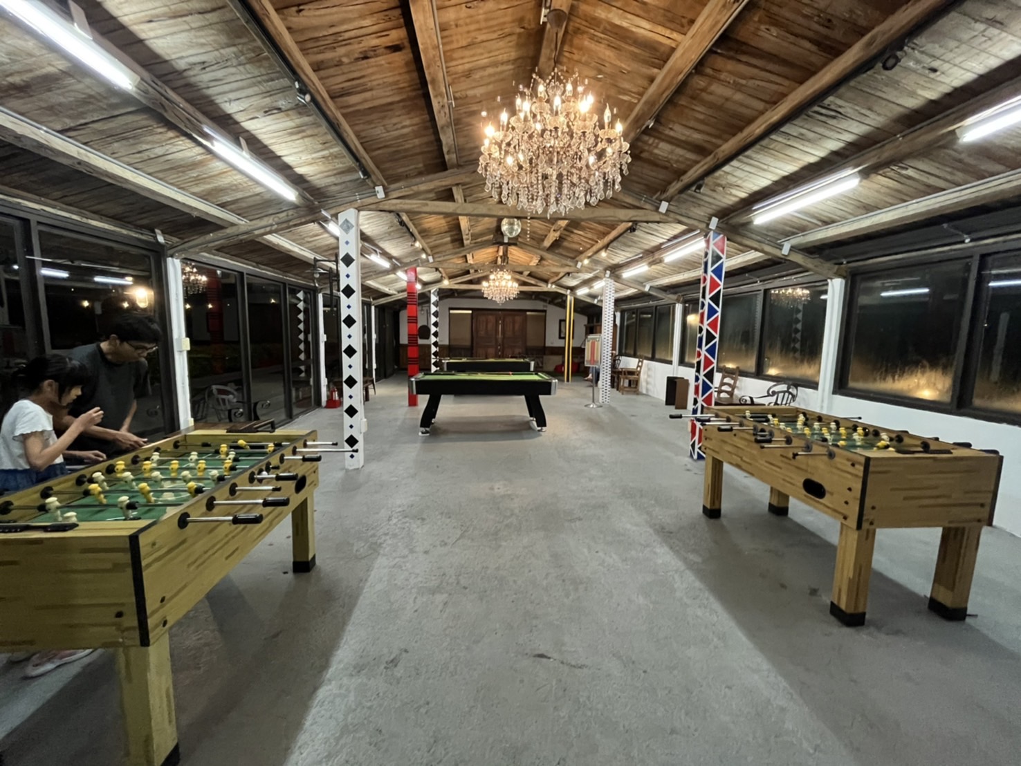撞球、手足球及桌遊在同一個地方,提供給住客放鬆。